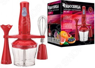 Блендер погружной Чудесница БП-421 электрический инструмент, который справляется с измельчением любых ингредиентов. Вы без особых усилий сможете измельчить продукты для крем-супа, воздушного омлета, коктейля, смузи, мусса, детского питания и многого другого. С ним процесс приготовления любимых блюд станет еще быстрее и проще. Великолепно справляется с непростыми задачами на кухне. Мотор с низким уровнем шума является бесспорным гарантом надёжности и выносливости. Блендер оснащен 2 ступенчатым переключателем скоростей для максимальной производительности. В наборе есть венчик для взбивания, и кронштейн, на котором держатся насадки. Оснащен мощным мотором с низким уровнем вибрации. Лезвия выполнены из нержавеющей стали, справляются как с крупными частицами, так и с более мелкими. Блендер легок в использовании и многофункционален, поэтому хлопот с ним даже не почувствуете. Преимущества Вы сможете создавать невероятно вкусные и аппетитные блюда, значительно сократив при этом время, потраченное на их приготовление. Блендер легко держать, рука не устает во время измельчения и взбивания. Его эргономичный корпус удобно ложится в ладонь, а регулятор можно переключать, не прерывая работу. Рабочая часть изготовлена из нержавеющей стали, поэтому не поддается ржавчине, гигиенична и долговечна. Также легко снимается и без проблем очищаются. Этот блендер непременно станет отличным дополнением и позволит компактно хранить его среди другой бытовой техники, не занимая много места. Используется как профессионалами, так и теми, кто только начинает делать первые шаги в готовке вкусностей. None Возможен самовывоз. Есть доставка.