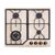 Цвет-слоновоя кость чугунные решетки Газ-контроль конфорок Автоматический электроподжиг конфорок 1 конфорка с тройным пламенем 2 средние конфорки средней скорости 1 малая вспомогательная конфорка Размер: 60см При заказе с сайта 5% скидка!