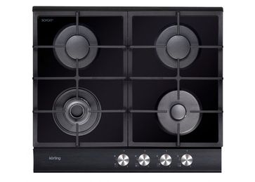 Материал поверхность – закаленное стекло SCHOTT Стекло поверхности производится одним из лидеров рынка – компанией SCHOTT. Высокая устойчивость к тепловому и химическому воздействию, низкое тепловое расширение, высокая устойчивость к тепловым ударам, способность выдерживать в течение длинных периодов времени температуры до 450 °C. Все это позволяет использовать его в течение длительного времени, в самых сложных задачах при приготовлении пищи. Электроподжиг Вам больше не придется пользоваться спичками и зажигалками. Система «Электроподжиг» от Kцrting очень удобна и абсолютно безопасна. Просто поверните и нажмите регулятор — конфорка автоматически зажжется. Металлические поворотные регуляторы Поворотные регуляторы газовых варочных поверхностей Kцrting «газ на стекле» выполнены из металла, что создает профессиональный стиль и препятствует их нагреву. Сверхмощная конфорка WOK Приготовление блюд становится еще более быстрым, а нагрев посуды равномерным. Kцrting установил в свои модели конфорку с двумя рядами пламени для более быстрого приготовления. Экономьте свое время с Kцrting. К тому же сверхмощная конфорка WOK поможет вам приготовить изысканные блюда восточной кухни. «Газ-контроль» Даже если пламя погаснет, вам не стоит переживать, ведь во всех моделях Kцrting установлена система безопасности «Газ-контроль». Данная функция просто остановит подачу газа в случае, если конфорка случайно погаснет. Чугунные держатели для посуды Kцrting изготавливает держатели для посуды из высококачественных материалов, чтобы вы могли пользоваться ими долгие годы. Держатели из чугуна эргономичны и очень устойчивы. Благодаря этому вам удобно готовить на поверхностях Kцrting, а риск падения кастрюль и пролива жидкостей сводится к минимуму. Подставки для кофейника и для WOK посуды в комплекте. Технические характеристики Дизайн: «Газ на стекле» Панель из матового алюминия под регуляторами Цвет: Черный Ширина: 60 см Материал: SCHOTT BOROFLOAT® 4 высокоэффективные конфорки Зона WOK с двойным р