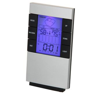 Метеостанция Hama TH-200 снабжена тремя встроенными датчиками _ термометром, барометром и гигрометром. Она может измерять температуру и влажность воздуха в помещении, а также предоставлять пользователю прогноз погоды на ближайшее будущее. Благодаря этому он сможет узнать, как лучше одеться и как правильно запланировать поездку. МАКСИМАЛЬНОЕ УДОБСТВО На большом ЖК-дисплее с подсветкой отображаются текущие показания, время и история измерений, представленная в виде графика. Пикто None