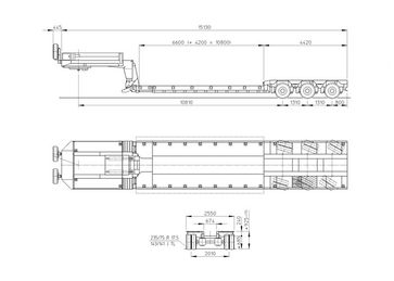 Тягач трех осный .Прицеп гп 45 тонн передний заезд погрузочная высота 06 м. Схема прилогается.