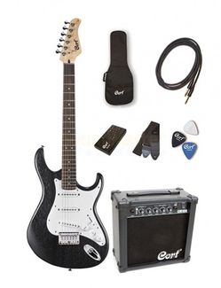 CGP-100-OPB Trailblazer Электрогитара черная + комбоусилитель + аксессуары, Cort В комплект входит: Электрогитара G100-OPB черная Комбоусилитель Cort CM10G Чехол Электронный тюнер Ремень Инструментальный кабель Медиаторы (3шт) Оплата: наличные, Visa/Mastercard, б/н расчет.