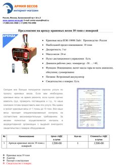 - Аренда крановых весов. Свидетельство о поверке по выгодной цене 700 р. руб.;