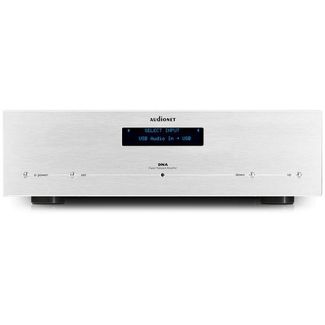 Модель Audionet DNA 2.0 — это усилитель нового поколения с функциями стримера, ЦАПом, АЦП и FM-тюнером. Индекс DNA расшифровывается как Digital Network Amplifier — «цифровой сетевой усилитель». Однако данный интегральник обладает аналоговым трактом с топологией «двойное моно» и тороидальными силовыми трансформаторами мощностью по 700 ВА для каждого канала. Отдельный трансформатор (50 ВА) питает входной и драйверный каскад. Усилитель развивает мощность 2 х 165 Вт (8 Ом), имеет раздельное питание цифровых и аналоговых секций, использует связь по постоянному току и не имеет в сигнальных цепях портящих звучание катушек и конденсаторов. В контурах Audionet DNA 2.0 задействованы элементы премиум-класса, а разводка выполнена кабелем из сплава серебра и золота. Для получения чистого звука при любых режимах работы применяется технология ULA (ультралинейное усиление).Толстостенный корпус изготовлен из алюминия и стали (шасси). На фасаде присутствует FL-дисплей и 4 кнопки для питания/standby, меню, регулировки громкости и выбора входов.Усилитель позволяет настраивать временные задержки для АС. Система Bass manager управляет двумя сабвуферами и позволяет изменять частоту среза, коэффициент добротности Q factor, фазу и другие настройки. Есть цифровой параметрический эквалайзер, а согласовать АС с геометрией помещения помогает фирменный софт CARMA.Усилителем можно управлять через компьютер с помощью ПО Audionet RPC с доступом к настройкам эквалайзера, фильтров, временных задержек и т.д. Для управления также служит комплектный пульт или приложение для устройств с Android или iOS.В аппарат встроена пара цифро-аналоговых конвертеров, а особая фирменная технология обеспечивает двухступенчатую фильтрацию и асинхронный апсемплинг до 24 бит/192 кГц. Для работы усилителя в качестве стримера достаточно интегрировать его в локальную сеть через LAN- или Wi-Fi-подключение. При этом воспроизводятся файлы в разрешении 24 бит/192 кГц с UPnP-серверов и компьютеров этой сети, а также программы ве