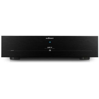 Модель Audionet AMP IV имеет четыре канала усиления и обеспечивает минимальное количество искажений. Аппарат собран в сравнительно компактном корпусе и весит 18 кг. Толщина его фронтальной алюминиевой панели составляет 1 см. На фасаде имеется кнопка включения усилителя и его перевода в «спящий» режим, а также LED-индикатор, сигнализирующий о включении в сеть и о других режимах работы.В блоке питания мощника установлены два крупных тороидальных трансформатора и набор высокоемкостных буферных конденсаторов (суммарная емкость: 96000 мкФ). Модель способна развить мощность в 100 Вт на каждый из 4-х каналов при нагрузке в 8 Ом и в 180 Вт при 4 Ом. Оконечник можно использовать как для усиления четырех каналов, что особенно актуально в ДК, так и для подключения по схеме bi-amping для получения качественного саунда в стереосистеме. Высокий коэффициент демпфирования позволяет Audionet AMP IV справляться даже с непостоянными по импедансу акустическими системами.В конструкции используется фирменная технология ULA — ультралинейное усиление, благодаря которому удается получить быстрое и свободное от искажений звучание независимо от условий и режимов работы. В оконечнике применяются качественные заказные комплектующие, включая специально подобранные сильноточные станиолевые конденсаторы с минимальным тангенсом угла диэлектрических потерь и другие элементы. В качестве провода для разводки используется кабель с проводниками из сплава серебра и золота.Функции Audionet AMP IV контролируются бортовым микропроцессором, который также обеспечивает защиту от перегрева, самовозбуждения, перегрузки и постоянной составляющей в сети. Драйверный и выходной каскад собраны на дискретных элементах и отличаются высоким быстродействием и стабильностью работы. В контурах усилителя используется связь по постоянному току, а пути прохождения сигнала сокращены и свободны от вносящих искажения разделительных конденсаторов. При активации режима DC-servo для устранения постоянной составляющей на выходе в це