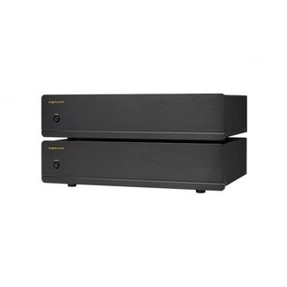 Моно усилитель мощности. Большой тороидальный трансформатор на 800 Вт с двойным выпрямителем и двумя конденсаторами с винтовыми клеммами емкостью по 10000 мкФ. Конструкция биполярного транзистора с использованием тщательно отобранных комплектующих. Специально сконструированная схема замедленного старта уменьшает всплеск потребления при включении, который иначе был бы весьма значительным ввиду размеров трансформатора.