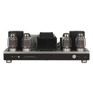 На тыльной стороне аппарата имеется переключатель между этими входами. Верхняя площадка корпуса равномерно заполнена элементами, среди которых имеются две входные лампы ECC83, а также пара двойных триодов ECC82, несущих ответственность за секцию драйверов. Выходные трансформаторы представлены двумя моделями Luxman OY-15 в алюминиевых футлярах. Качественное питание обеспечивает солидный Ш-образный трансформатор. На выходе установлены четыре лучевых тетрода KT88 – по два на канал. Рядом с ними расположены подстроечные резисторы для регулировки токов покоя.