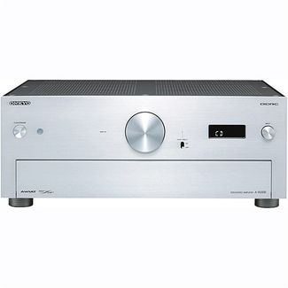Референсный интегральный усилитель A-9000R призван освежить интерес любителей качественного звука к обновленной Hi-Fi продукции компании Onkyo.Onkyo A-9000R имеет классический дизайн, о чем говорит солидный высокий корпус с антивибрационными компонентами шасси – отделенными друг от друга алюминиевыми панелями верхней, передней и боковых частей. Редко используемые элементы управления (регуляторы баланса, тембра, выключатель питания, переключатель между парами акустических систем, кнопка “Set Up” и вход для наушников) скрыты под открывающейся передней крышкой. Крупная ручка громкости находится в центре фронтальной стенки, справа расположен переключатель “Pure Direct”, небольшой отключаемый дисплей с возможностью установки двух режимов яркости и селектор входов. Слева находится кнопка “On/Standby.” В комплекте есть пульт ДУ.Onkyo A-9000R имеет три аналоговых аудио-входа и один аудио-выход, вход “Main In” и выход предусилителя “Pre Out”. Цифровые входы: один балансный AES/EBU (производитель – Amphenol), один оптический, два коаксиальных. Есть USB-порт, позволяющий воспроизводить музыкальные HD-файлы с компьютера (в формате 24 бит/192 кГц) путем асинхронной передачи данных, гнезда RI и разъемы для LP-проигрывателя (картриджи MM/MC). На задней стенке присутствуют четыре пары клемм для акустических систем.К техническим особенностям можно отнести параллельную двухтактную схему усиления, состоящую из трех каскадов, где использованы инвертированные транзисторы Дарлингтона. Аппарат имеет встроенные ЦАПы Wolfson (чип WM8742, 24 бит/192 кГц), по одному на каждый канал. Применена улучшенная технология широкополосного усиления AWRAT (как в оконечнике Onkyo M-5000R) и задействованы модули системы DIDRC, подавляющей интермодуляционные искажения. Печатные платы крепятся к корпусу A-900R с помощью специальных внутренних распорок, что снижает вибрации. Цифровая и аналоговая части схемы полностью разделены. Левый и правый каналы имеют симметричную компоновку. Разработчики использовали в