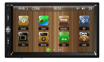 Автомобильная мультимедийная система 7" c GPS навигацией. Поддержка MP3 / MKV (AAC/AC3) / MPEG4 / DivX / XviD / WMA / JPEG SD-карты. USB-порт / Провод подключения iPhone/iPod None
