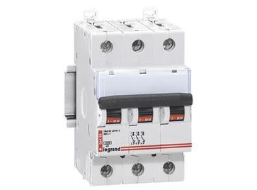 Автоматические выключатели Legrand серии DX3-E с тепловыми и электромагнитными расцепителями обеспечивают эффективную защиту от короткого замыкания и перегрузки. Номинальная отключающая способность от 6 kA до 63 A. Модульные автоматические выключатели Legrand DX3-E бывают одно-, двух- и трех- полюсными и применяются как в вводных, так и в распределительных щитах. В основном, данные устройства предназначены для использования на небольших коммерческих объектах и в жилых строениях. Например, автоматы серии DX3-E типа В имеют повышенную чувствительность к коротким замыканиям и рекомендованы для защиты групповых линий в деревянных загородных домах и дачах. Автоматические выключатели DX3-E функционируют в диапазоне температур от -25°С до +70°С, а также при постоянном напряжении до 80В на полюс и при частоте сети 400Гц. Это говорит о полном их соответствии промышленным сериям аппаратов защиты. Защелка с фиксированными положениями позволяет осуществлять быстрый монтаж / демонтаж изделия на DIN-рейку. Корпус автомата устроен таким образом, что даже в случае открытия лицевой панели электрощитовой исключена возможность прямого прикосновения к его токопроводящим частям. Кстати, хорошо продуманная форма и тщательно подобранные материалы устройства обеспечивают эффективную циркуляцию воздуха и снижение степени нагрева внутри него. Электробезопасность автоматического выключателя повышена за счёт шторок на клеммных зажимах. Стоит отметить и большое сечение зажимов – 35 мм2. А форма зажимов и винтов гарантирует высокую механическую прочность соединения проводников и снижает сопротивление контакта, степень нагрева и тепловые потери. Не лишним дополнением на устройстве стало небольшое окошко над рукояткой автомата – в него можно поместить самодельную этикетку с идентификацией цепи. Четкая маркировка на лицевой панели самого изделия делает доступной основную информацию об аппарате: название серии, состояние контактов (замкнуты / разомкнуты), тип время-токовой характеристики, номинал, о