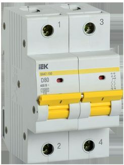 - Выключатель автоматический двухполюсный ВА47-150 80А D 15кА | код. MVA50-2-080-D | IEK по выгодной цене 3 044 р. руб.;