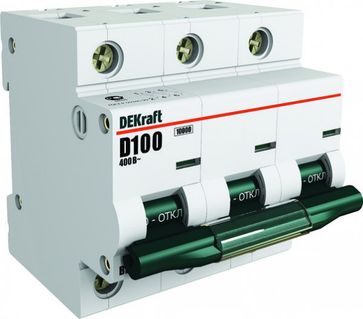 - Выключатель автоматический трехполюсный ВА-201 100А C 10кА | код. 13009DEK | DEKraft в каталоге Автоматические выключатели в Москве;