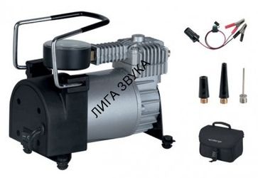 Высокопроизводительный автомобильный компрессор. Оптимально подходит для накачивания колес с дисками R14 и R15. Небольшой вес, амортизирующие ножки, резиновый шланг высокого давления со штуцером быстрой фиксации, комплект дополнительных съемных насадок, адаптер электропитания в прикуриватель, сумка для переноски и хранения компрессора. Автоматический термодатчик обеспечивает защиту от перегрева.