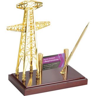 <p>Настольный прибор со статуэткой вышки высокого напряжения станет необычным и полезным подарком представителям энергетических организаций.</p> <p>На приборе предусмотрены держатели для визиток и шариковой ручки.</p> <p>Цвет: красное дерево/золотистый<br />Материал: дерево/нержавеющая сталь<br />Размер товара: 230 x 135 x 280 мм.<br />Описание упаковки: картонная коробка черного цвета<br />Размер упаковки: 240x150x300 мм</p> Наличные, безнал., карты, эл. деньги, юр. лица Возможен самовывоз. Есть доставка.