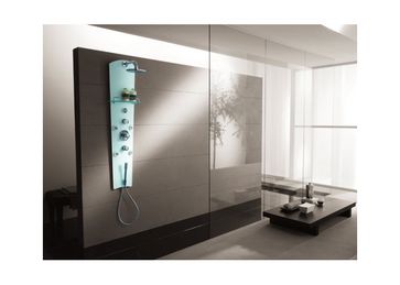 Панель из полупрозрачного закаленного стекла. Функции:боковая оборудованная панельтермостатический смесительручной выбор гидромассажавертикальный массаж 5 форсункамирегулируемая душевая лейкаручной душ при заказе от 30 тысяч рублей - 100% предоплата. Есть доставка.