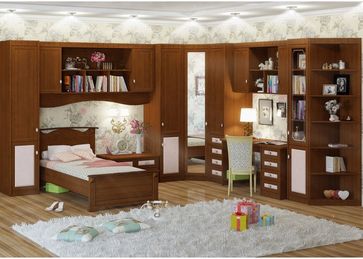 Детская комната Итальянские мотивы №16 от фабрики Гармония - это лучшая и красивейшая детская мебель. Вы можете выбрать любые предметы из этих коллекций и сформировать свою, неповторимую детскую, или купить готовую композицию. Классическая детская подойдет как для мальчика, так и для девочки. Можно выбрать различные цвета корпуса и отделки. Стоимость за детскую комнату указана без подушек. Возможно собрать данную детскую комнату поэлементно. Комплектация: Кровать (арт. 51.103.04 габаритные размеры (ШхВхГ): 1309302110 - 1шт Спальное место: 90Х200Тумба под ТВ (арт. 51.303) габаритные размеры (ШхВхГ): 880460620 - 1шт Стол письменный (арт. 51.501.00) габаритные размеры: 1520750620 - 1шт Шкаф одностворчатый (стекло) (арт. 51.201.07) габаритные размеры: 4502280580 - 1шт Шкаф одностворчатый (арт. 51.201.09) габаритные размеры (ШхВхГ): 4502280580 - 1шт Шкаф одностворчатый (арт. 51.201.11) габаритные размеры (ШхВхГ): 4502280580 - 2штШкаф угловой (зеркало) (арт. 51.203.03) габаритные размеры (ШхВхГ): 8802280880 - 1шт Приставка угловая (правая) (арт. 51.204.02) габаритные размеры (ШхВхГ): 4202280580 - 1шт Шкаф навесной (арт. 51.601) габаритные размеры (ШхВхГ): 20501020400 - 1шт Шкаф навесной (арт. 51.603) габаритные размеры (ШхВхГ): 1550*800×*400 - 1шт Характеристики: