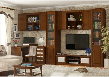 Тумба под ТВ (арт. 51.302) Габаритные размеры (ШиринаВысотаГлубина): 1520460620мм. - 1 шт. Стол угловой левый (арт. 51.502.02) Габаритные размеры: 15207501130мм. - 1 шт. Шкаф одностворчатый (стекло) (арт. 51.201.07) Габаритные размеры: 4502280580мм. - 2 шт. Шкаф навесной (арт. 51.603) Габаритные размеры: 1550800400мм. - 2 шт.