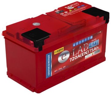 - Аккумулятор автомобильный E-Lab EFB 6СТ-75 обр. 278x175x190 по выгодной цене 8 500 р. руб.;