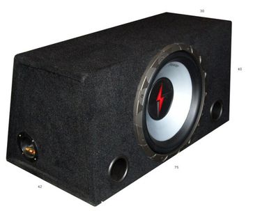 PPI корпусной сабвуфер в фазоинверторном корпусе типа "полутрапеция", динамик 15" (380 мм), 2 х 4 Ом, 300 Вт RMS, НЧ: полипропилен, размеры: 75 х 40 х (42/30) см, темно серым карпетом. None