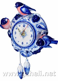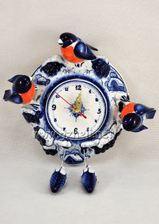 - Часы настенные "Снегири". Гжельский фарфор. арт. 1811 в каталоге Авторская песня в Москве;
