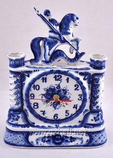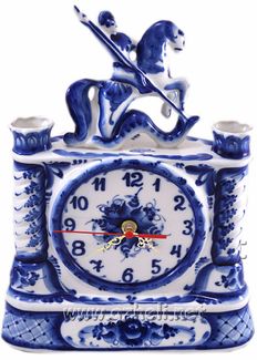 Закажите Часы настольные "Георгий". Гжельский фарфор. арт. 1204 у компании Гжель, гжельский фарфор, интернет – магазин подарков и сувениров. в Москве на портале Alloy: