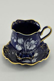 - Кофейная пара "Тюльпан" в кобальте. Гжельский фарфор. арт. 1390 по выгодной цене 1 790 р. руб.;