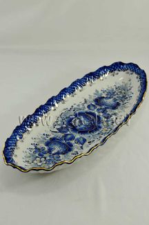 Закажите Селедочница в золоте №2 средняя. Гжельский фарфор. арт. 1622 у компании Гжель, гжельский фарфор, интернет – магазин подарков и сувениров. в Москве на портале Alloy: