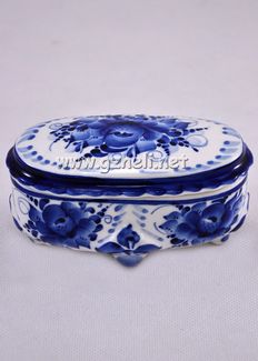 Закажите Шкатулка сувенирная "Овальная". Гжельский фарфор. арт. 1354 у компании Гжель, гжельский фарфор, интернет – магазин подарков и сувениров. в Москве на портале Alloy: