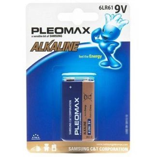 Щелочная батарейка 9В Samsung Pleomax 6LR61 используется в устройствах с высоким или средним потреблением энергии, таких как фонари, рации, игрушки с электромоторами, радиоприемники. Нал/безнал, Visa, Mastercard, Мир, Qiwi