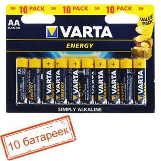 - Батарейка AA VARTA LR6 10BL Energy, щелочная, 10 шт, в блистере (4106) по выгодной цене 346 р. руб.;