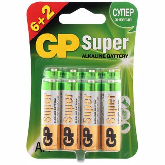 - Батарейка GP Super GP15A6 2-2CR8 LR6 6+2 шт BL8 по выгодной цене 16 р. руб.;