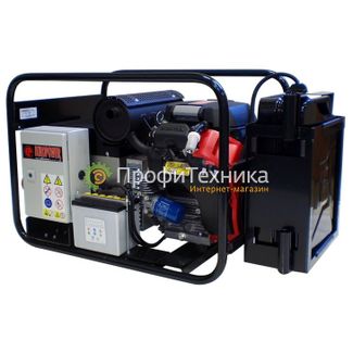 4-х тактный бензиновый двигатель Honda GX630, мощность генератора 9.6 кВт, электрический стартер, выходное напряжение трехфазное 230/400В, топливный бак 20.0 л, расход топлива 4.7 л/ч, емкость картера 1.9 л, 1 розетка 230В/16А и 1 розетка 400В/16А, теплов... None