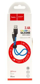 Закажите Data кабель USB HOCO X21+ micro usb, 0,25 метр, черно-голубой у компании sontel.ru в Москве на портале Alloy: