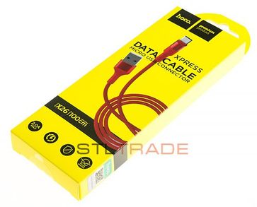 Data кабель USB HOCO X26 micro usb, 1 метр, красный