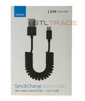 - Data кабель витой microUSB, 1,5м, черный, Deppa по выгодной цене 150 р. руб.;