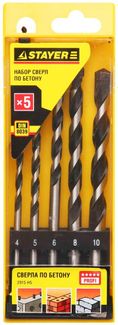 - Набор STAYER "PROFESSIONAL": Свёрла по бетону, ударные 4, 5, 6, 8, 10мм, 5шт по выгодной цене 409 р. руб.;