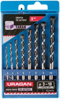 Набор URAGAN Свёрла "TARAN" по бетону, ударные, 3; 4; 5; 6; 7; 8; 9; 10мм, 8шт