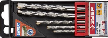 Набор ЗУБР Сверла по бетону ударные, 4-5-6-8-10 мм, пластиковый бокс, 5 шт
