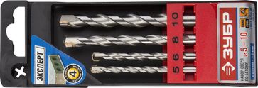 Набор ЗУБР Сверла по бетону ударные, 5-6-8-10 мм, пластиковый бокс, 4 шт