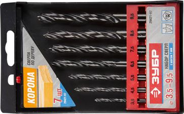 - Набор ЗУБР Свёрла "ЭКСПЕРТ" по дереву, 3,5;4,5;5,5;6,5;7,5;8,5;9,5мм; 7шт по выгодной цене 412 р. руб.;