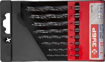 - Набор ЗУБР Свёрла "ЭКСПЕРТ" по дереву в боксе, 8шт: 3, 4, 5, 6, 7, 8, 9, 10мм по выгодной цене 463 р. руб.;