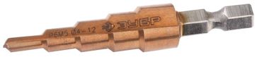 Сверло ЗУБР "КОБАЛЬТ" ступен. по сталям и цв.мет.ст.Р6М5 с кобальт.покр.d 4-12мм,5ст.d4-6-8-10-12,L-65мм,6-тигр.хв.1 4"