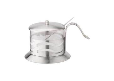 Сахарница объемом 280 мл с крышкой и ложечкой, состав: сталь + стекло None