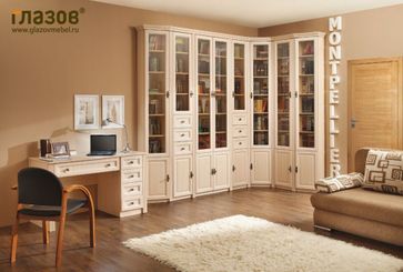 Благодаря модульности коллекции, библиотеку MONTPELLIER можно расположить в Вашем домашнем кабинете или гостиной, выбрав для компоновки именно то, что Вам нужно. Модульная библиотека MONTPELLIER, благодаря светлому декору Дуб Млечный, производит впечатление легкости, надежности и поддерживает позитивный рабочий настрой, при этом комната не кажется перегруженной мебелью. Высокие шкафы надежно крепятся к стене, а тонированные стекла защищают книги от прямых солнечных лучей, пожелтения страниц и пыли. Петли Blum с демпферами в шкафной группе обеспечат комфорт, тишину при закрывании створок. Фасады шкафов по Вашему желанию можно навесить как на правую, так и на левую сторону. Рамочные фасады с филенкой, канелюры, карнизы придают композиции законченный вид. Рабочий стол - неотъемлемая часть любого рабочего пространства. Вместительный и функциональный, Стол письменный 1 выполнен в едином стиле со всей коллекцией. Его фрезерованная столешница укутана в прочную текстурную пленку ПВХ, что дополнительно защищает поверхность стола от царапин и повреждений. Классические канелюры выделены в самостоятельный модуль Добор с канелюрами докупаются отдельно, по желанию заказчика.