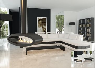Модель выполнена в форме эллипса из нержавеющей стали. Биокамин крепится к потолку и может вращаться на 360 градусов. В комплект входит закаленное стекло, крепить которое можно с одной или с двух сторон одновременно. Модельдоступна в четырех стандартных вариантах: черный, белый, матовый и с отделкой из полированной нержавеющей стали. Эти четыре варианта отделки могут комбинироваться между собой внутри и снаружи камина по желанию клиента. Нестандартное решение для вашего дома.