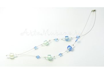 Синие, голубые и серебряные бусины-кубики на струн. Ручная работа. Италияе None