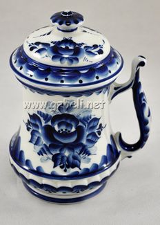 - Кружка пивная "Ажур" с крышкой. Гжельский фарфор. арт. 0997 по выгодной цене 1 480 р. руб.;