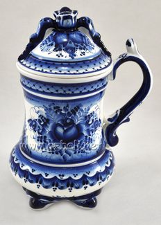 Закажите Кружка пивная "Подарочная" с крышкой. Гжельский фарфор. арт. 1329 у компании Гжель, гжельский фарфор, интернет – магазин подарков и сувениров. в Москвена портале Alloy:
