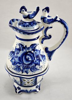 - Кувшин "Птички" с крышкой. Гжельский фарфор. арт. 1001 в каталоге Болезни сосудов в Москве;
