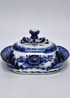 Закажите Масленка "Каролина". Гжельский фарфор. арт. 0715 у компании Гжель, гжельский фарфор, интернет – магазин подарков и сувениров. в Москвена портале Alloy: